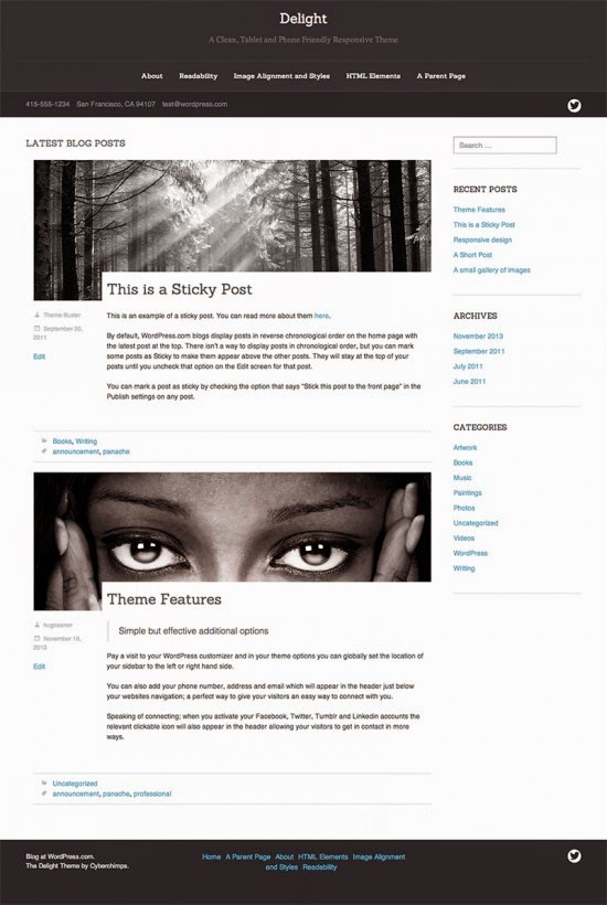Delight is an elegant responsive WordPress theme for professional writers and bloggers. Delight’s features include custom backgrounds, colors, header, menus, featured images, infinite scroll, and theme options. This theme is perfect for professional bloggers looking for an optimized, professionally developed WordPress theme that meets WordPress.com standards.